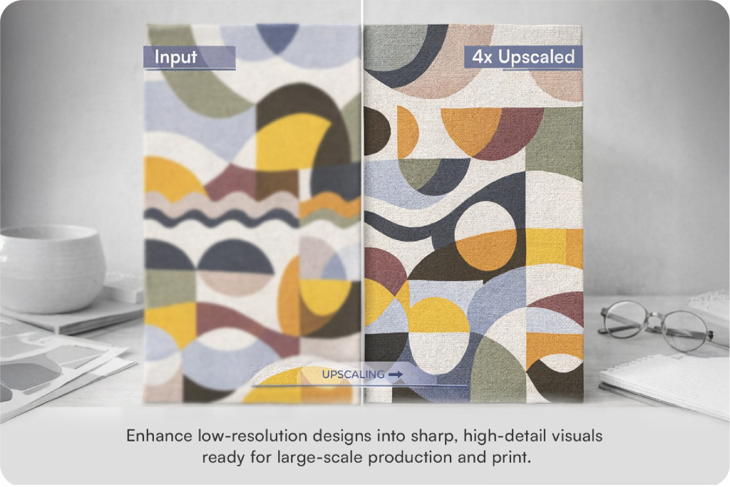 Effortlessly upscale prints, patterns, and textures while preserving sharpness and clarity of