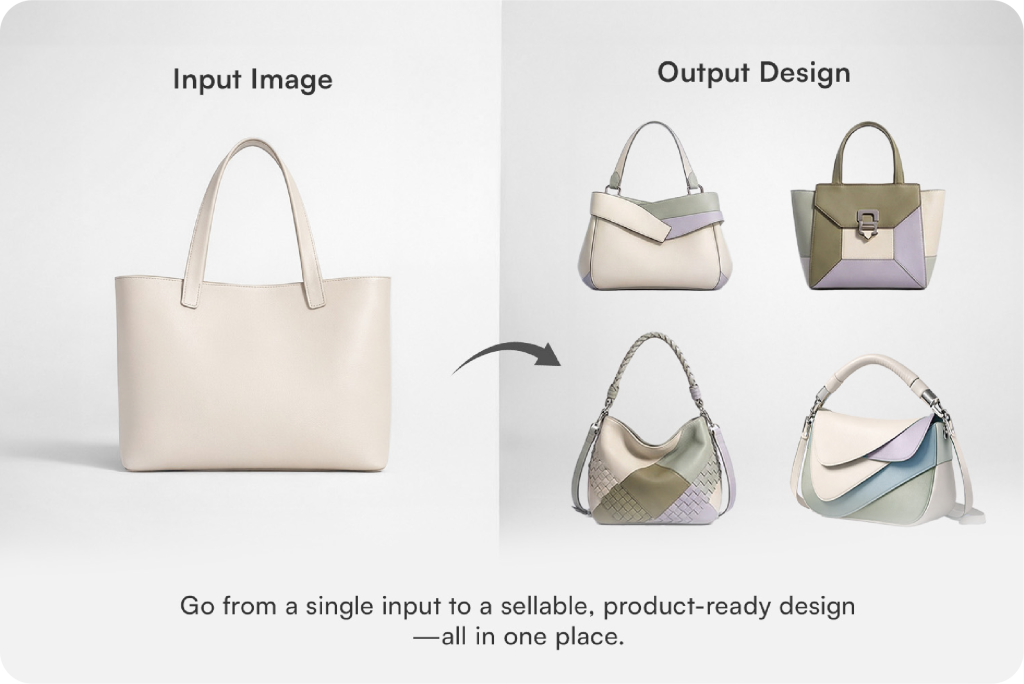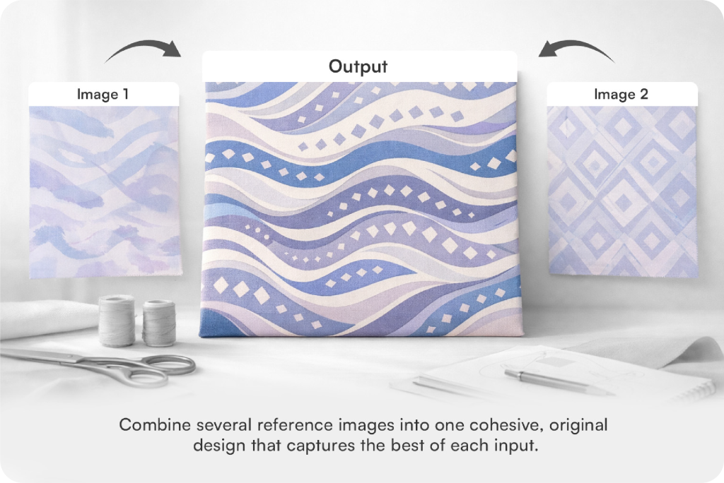Merge images that inspire you to create multiple original designs, build new collections effortlessly.