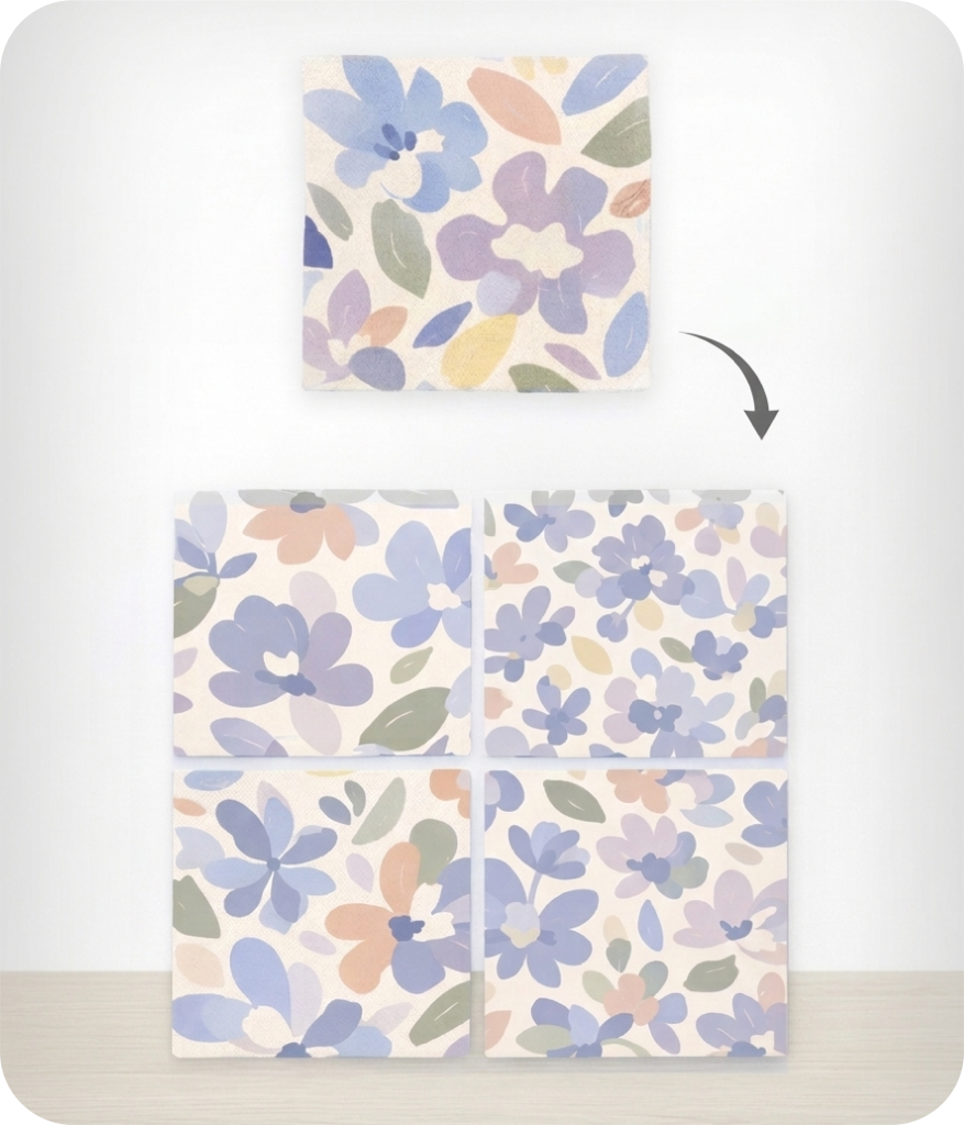 It creates multiple design variations based on an input image, analyzing the original composition, motifs, and style to produce outputs that stay within a defined range of similarity.